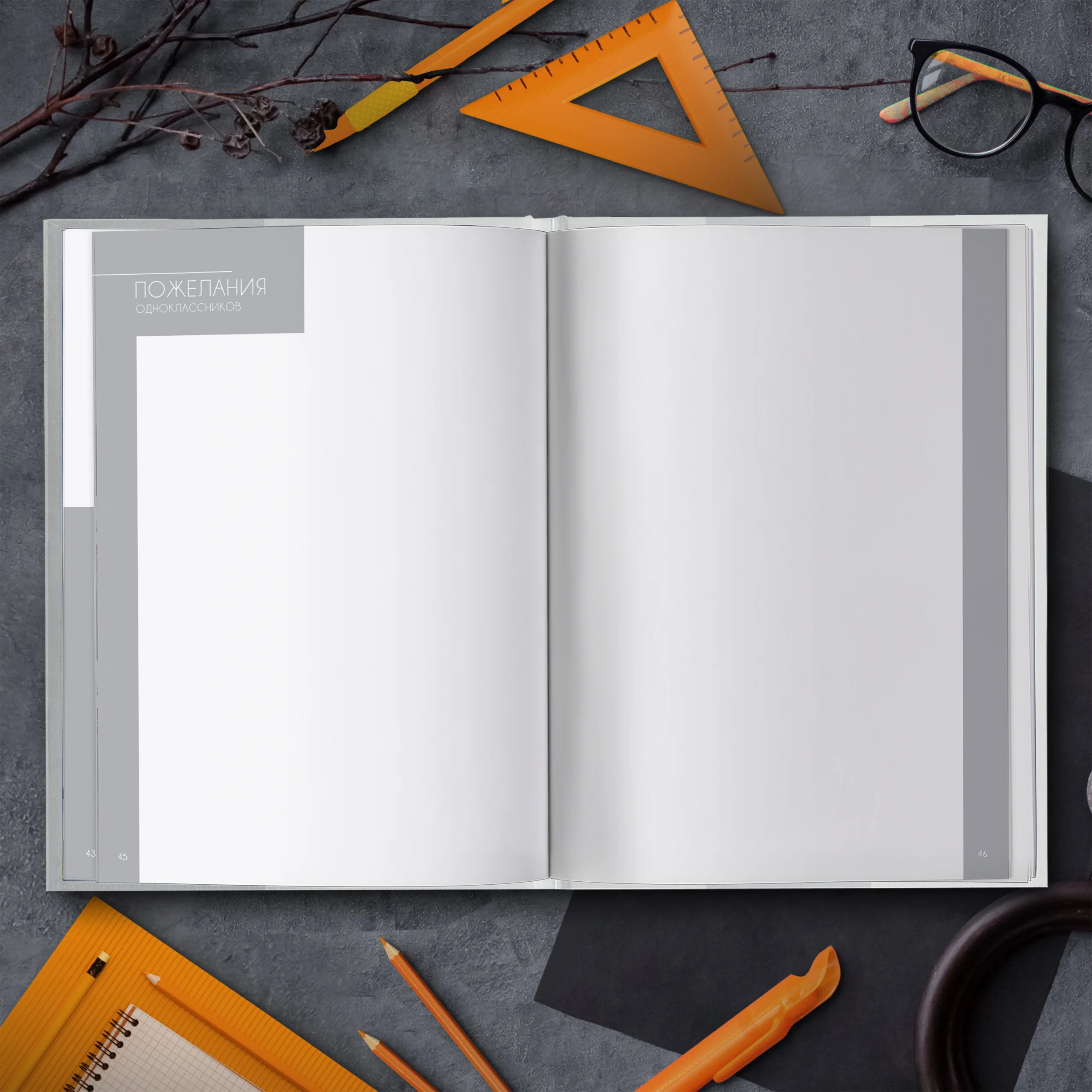 1ый разворот — виньетки педагогов и фотография классного руководителя с напутственным словом